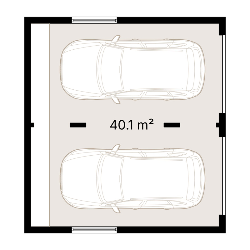 This spacious 40.1m² garage is perfect for two vehicles, providing ample room to park side by side while still leaving space for movement and storage.
