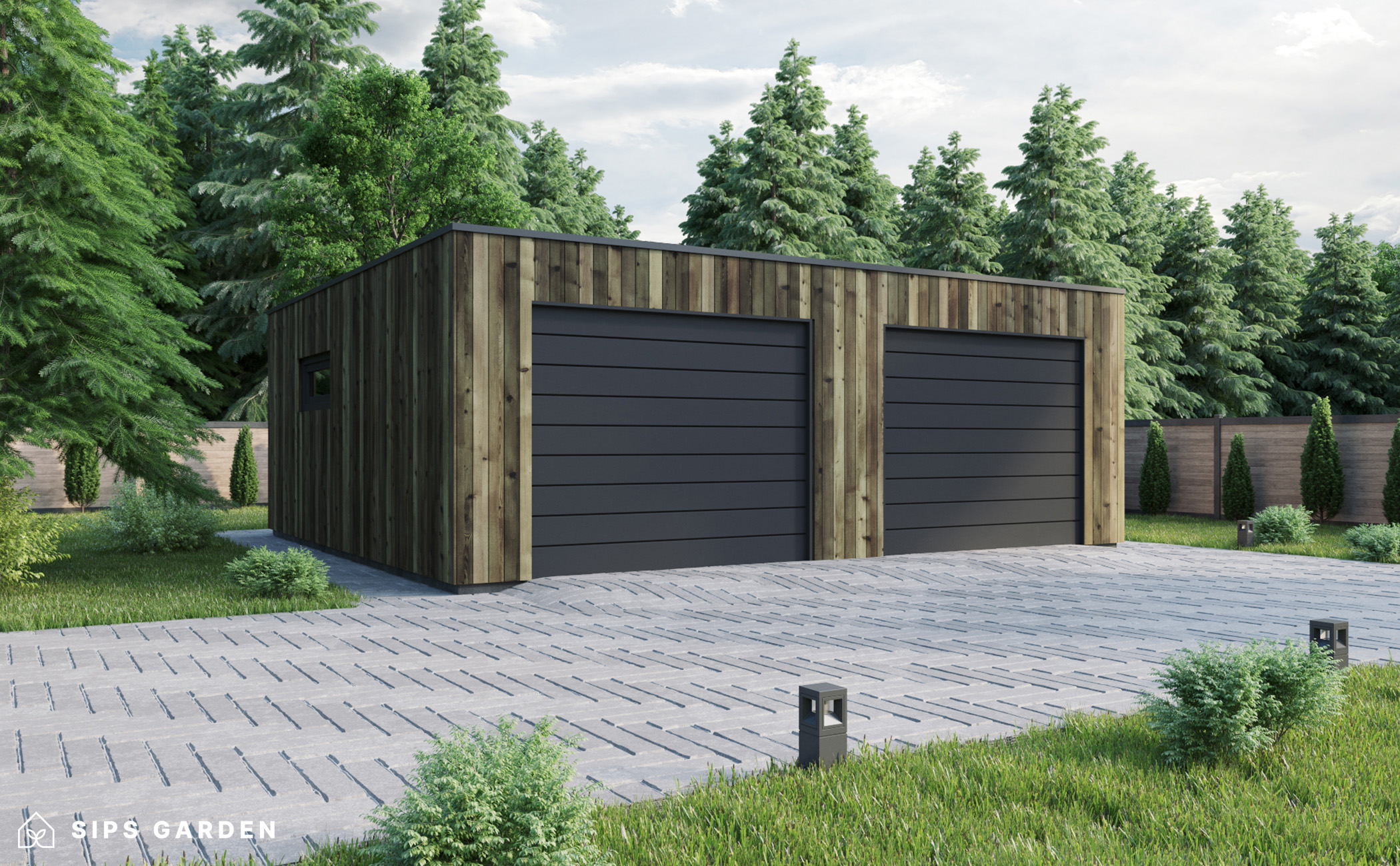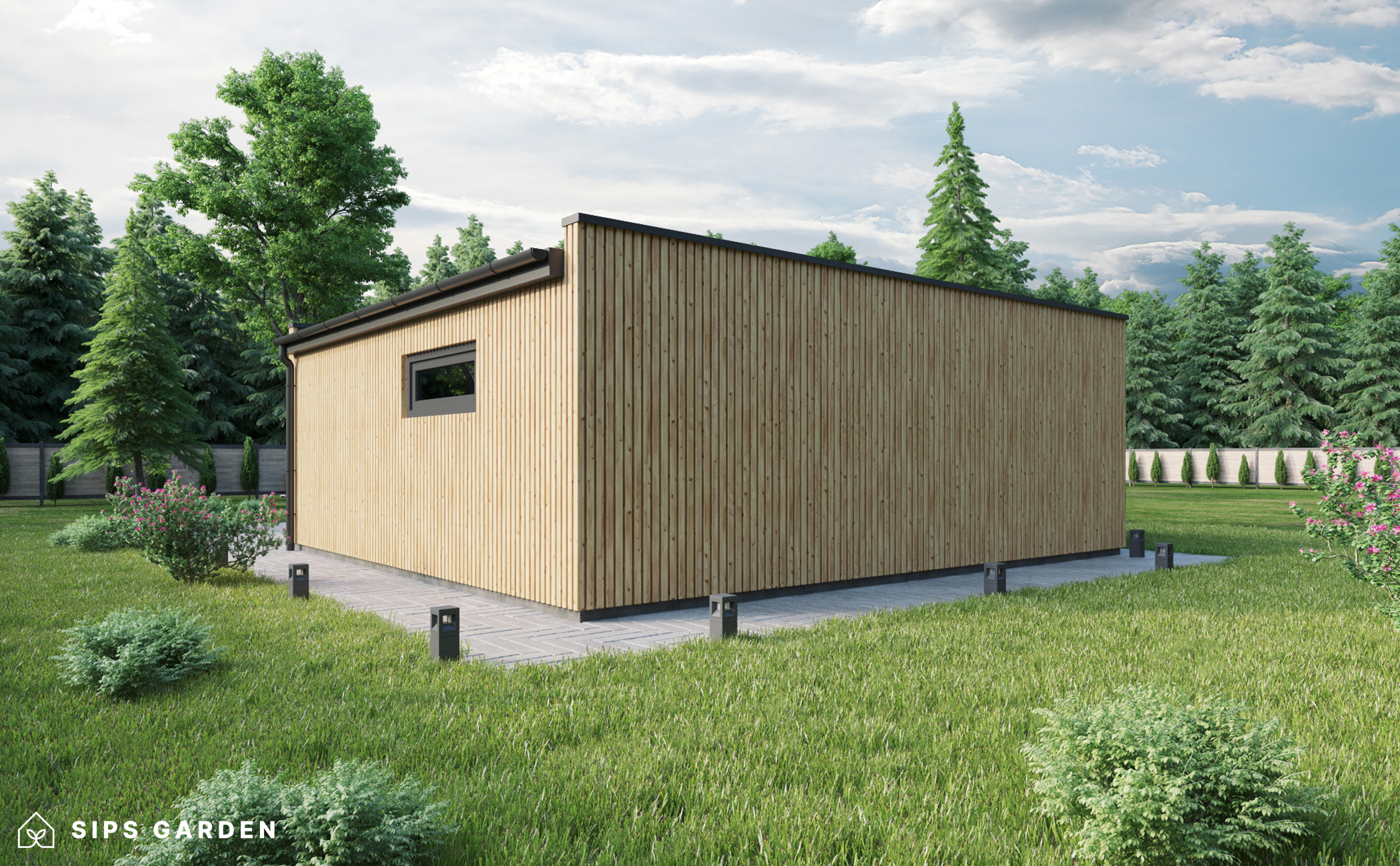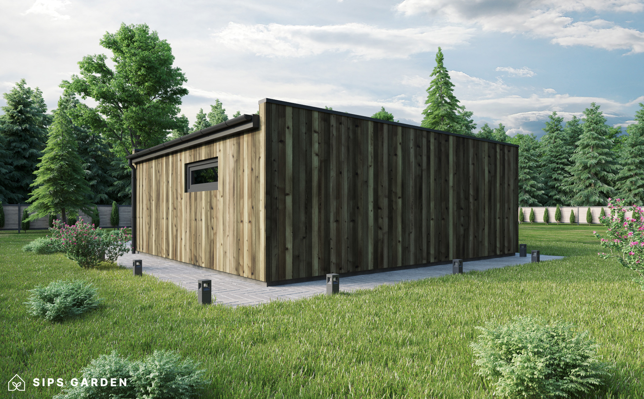 This product is crafted using an advanced, high-quality, and energy-efficient SIPs (Structural Insulated Panels) system, which ensures superior insulation and long-lasting durability. The exterior features anthracite grey PVC double-glazed windows and doors, complemented by an EPDM roof cover, a sturdy steel rain gutter, and elegant steel finishing details, all included as standard elements.